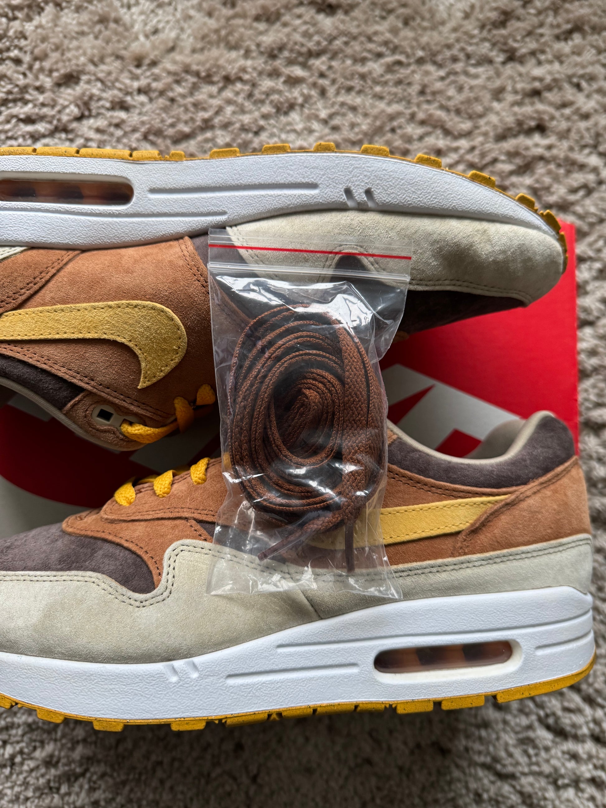 (2e KANS): Nike Air Max 1 PRM Duck Pecan Yellow Ochre - 44.5